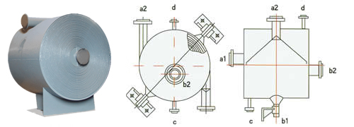2、在殼體上的接管采用切向結構,局部阻力小,由于螺旋通道的曲率是均勻的,液體在設備內流動沒有大的轉向,總的阻力小,因而可提高設計流速使之具備較高的傳熱能力。